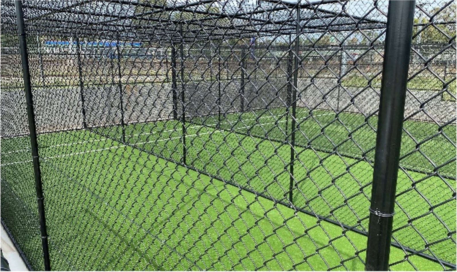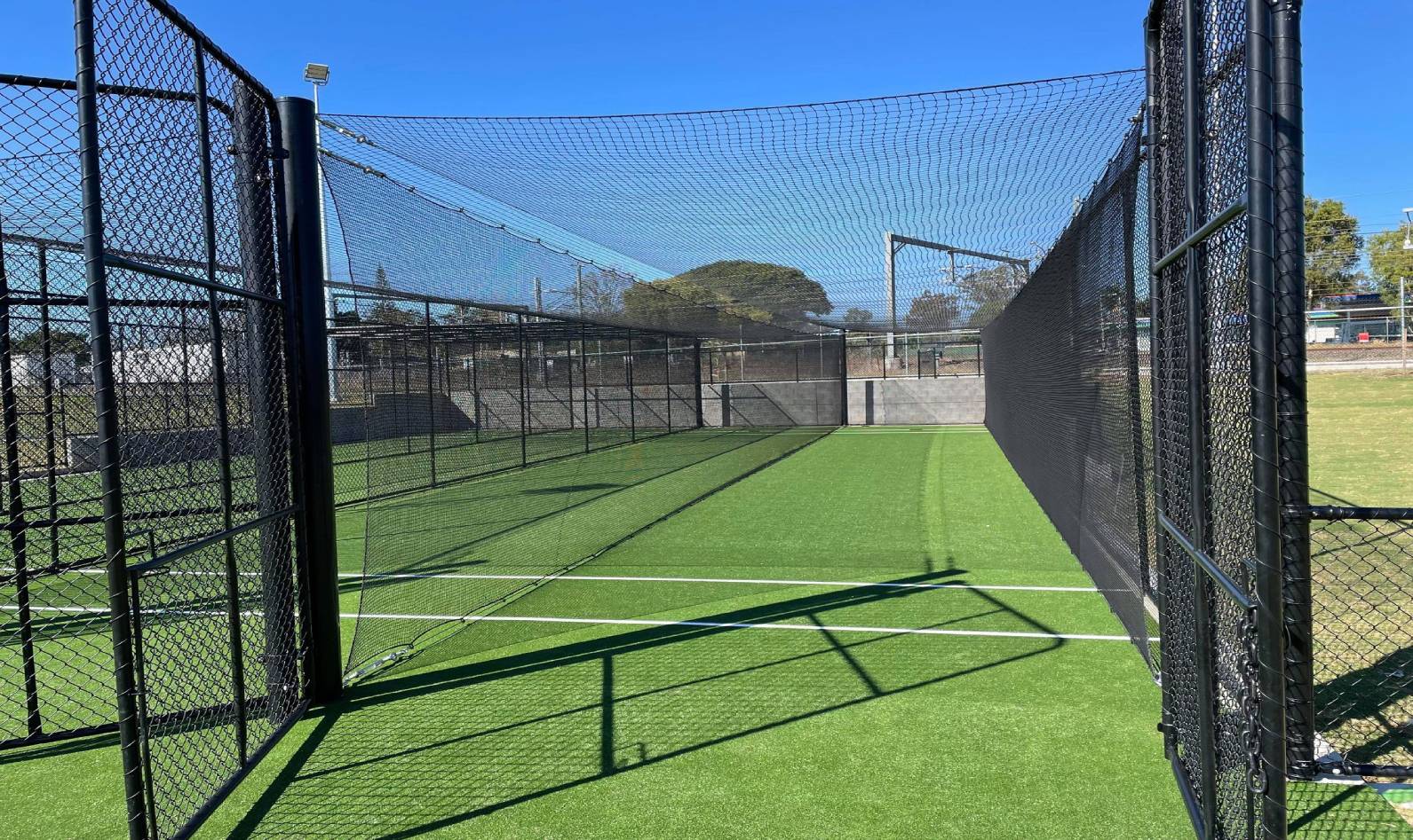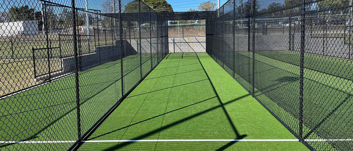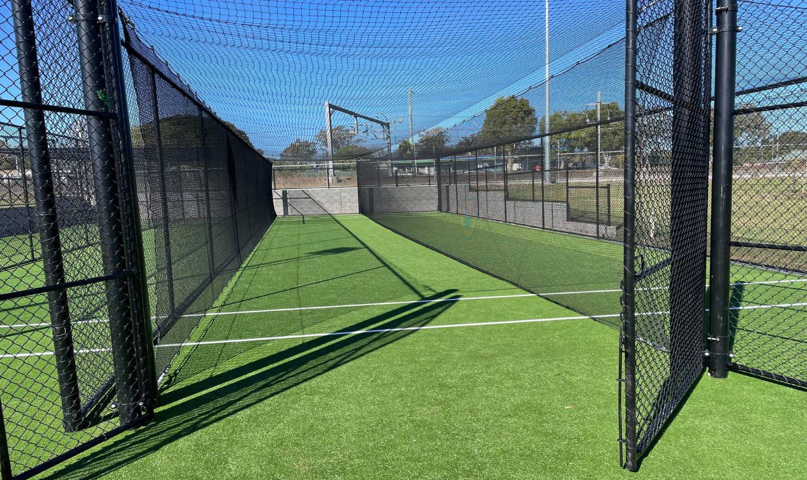 When Premier started at Wally Tate, Epoca had constructed the cricket pitches, and installed the chain wire fencing, ready for us to install the new nylon netting, and synthetic grass surface.